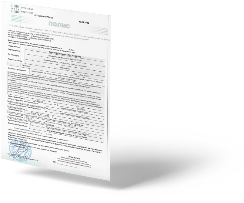 ПолисКарго — официальный партнёр биржи грузоперевозок АТI.su по страхованию ответственности перевозчиков и экспедиторов.
